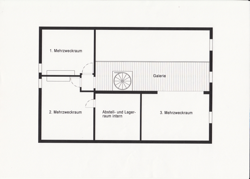 In das Obergeschoss kommt man über eine Wendeltreppe.